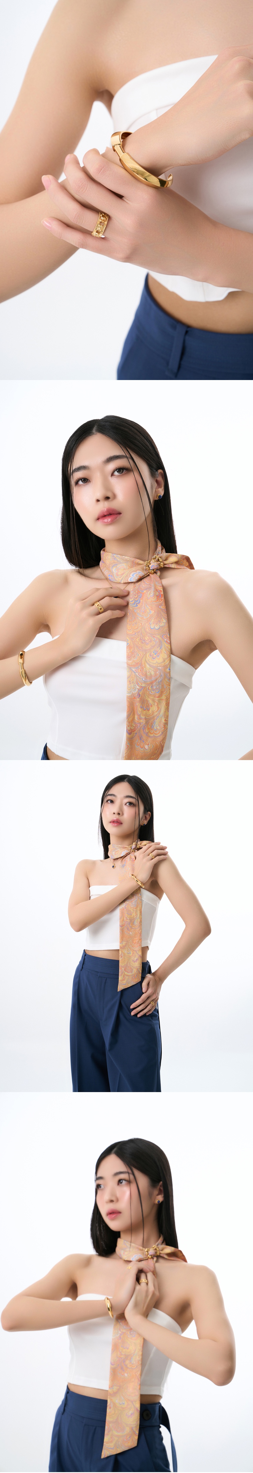 A bold bangle that symbolizes two fangs of a venomous snake. Handcrafted in 925 sterling silver and 18k gold plated. Produced in local factory located in Seoul, Republic of Korea.